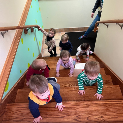 With this wintery Wisconsin weather keeping outdoor play limited, our Infant/Toddler class took their adventurous spirit to new heights and climbed the stairs for indoor activities!